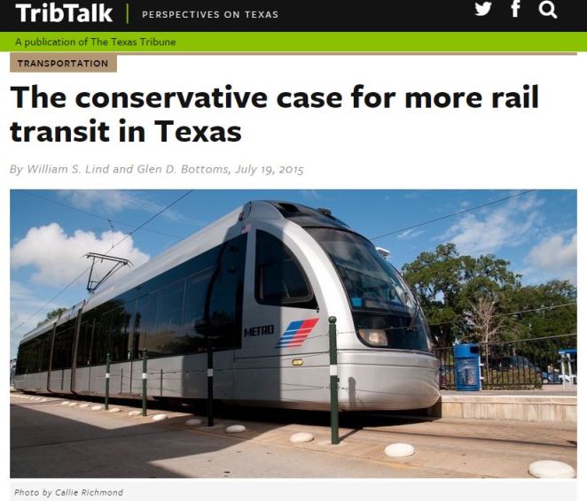 “It may seem unlikely in Texas, but across the state, people are benefiting from rail transit” say William S. Lind and Glen D. Bottoms in their commentary (ARN emphasis added here and subsequently).