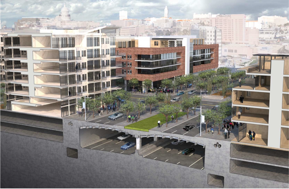 Rendition of Reconnect Austin's proposed "fully depressed" alternative design for I-35. Source: KUT Radio.