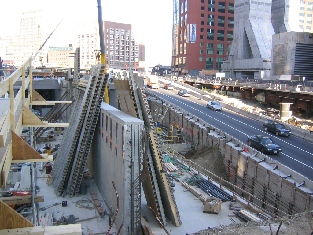 Boston's "Big Dig" under construction past city's CBD. Project re-routed I-93 Central Artery into a central-city tunnel. Source: Imaginerpe.com.