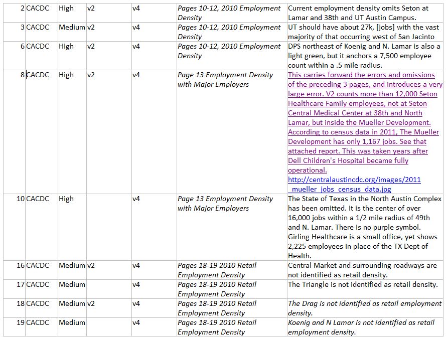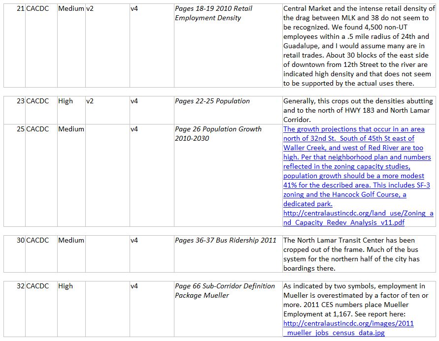 The map above shows the central-city study area (mislabeled by ProCon as a “Central Corridor”) with various sectors (mislabeled as “sub-corridors”) in 2010. The arterial spine of the G-L corridor (the most likely alignment for urban rail) is shown by a yellow line. Notice that heavy concentrations of high population density are clustered around the G-L corridor, particularly in the West Campus area, and just north of the campus, bordered by Guadalupe on the west and W. 29th St. on the south.