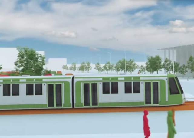 Simulation of light rail train serving ABIA airport station. Source: Project Connect.