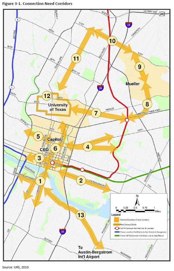 But, critics asked, what about the dense West Campus neighborhood and the busy commercial district on The Drag? What about the original plan for light rail along Guadalupe and Lamar? The “rapid bus” service included in the All Systems Go package, intended as a precursor to rail in the Guadalupe-Lamar corridor, was then viewed only as a temporary “fix”, and it seemed clear that rail needed to be planned for that corridor as well.